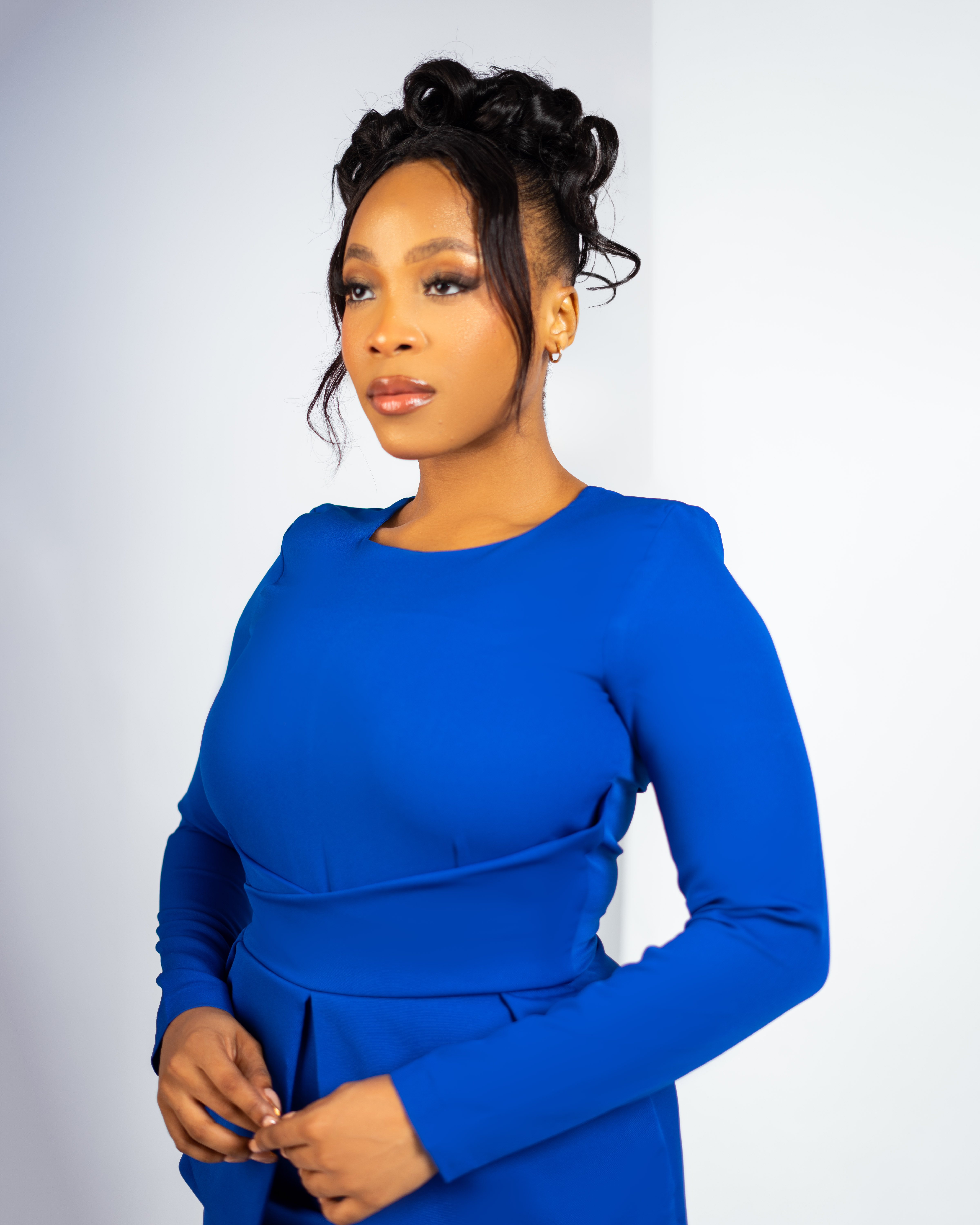 Step into pure confidence with AZURE—the ultimate statement in bold blue. With a sculpted peplum waist and tailored perfection from top to hem, this piece turns every entrance into an unforgettable moment.